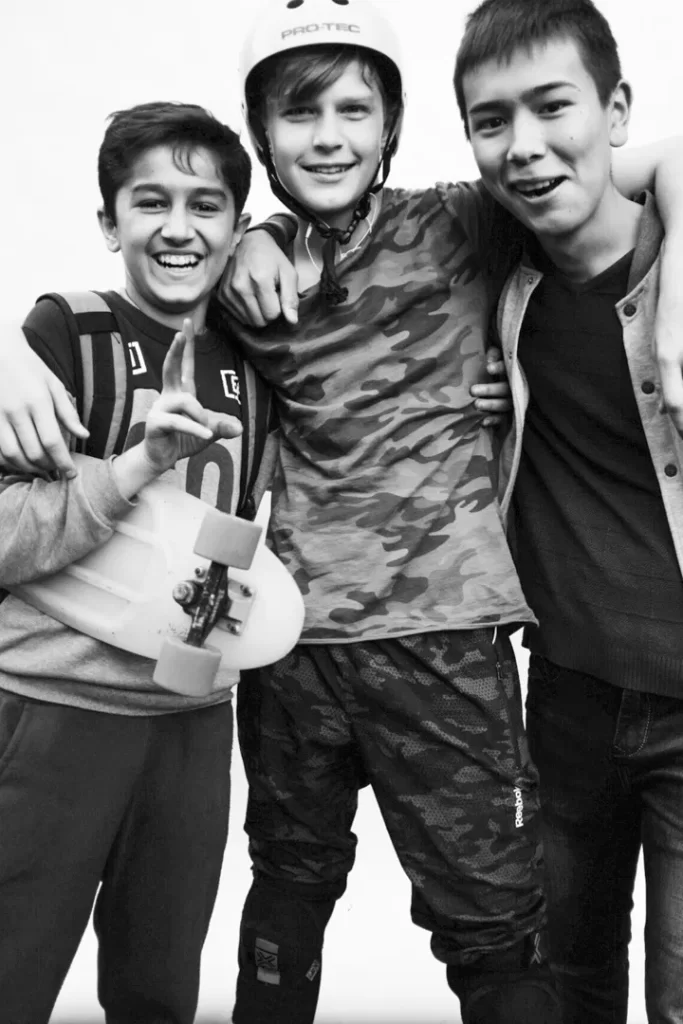 写真に写る彼らはモスクワのスケートボードパークで遊ぶ少年、少女たちです。